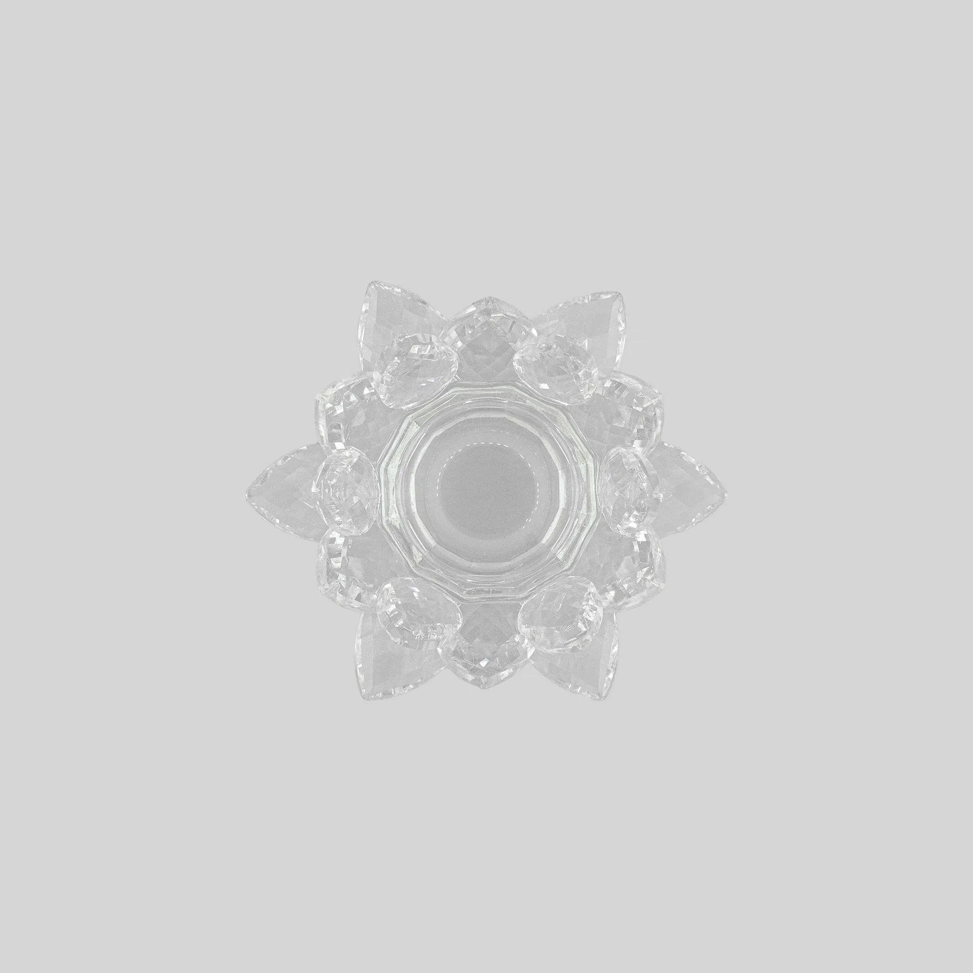 Façonné dans un cristal d’une clarté exceptionnelle, il capte chaque rayon de lumière pour le diffuser avec une intensité douce et apaisante. Ses pétales finement taillés reflètent la flamme dans un jeu d’éclats délicats, projetant des reflets mouvants qui transforment votre pièce en un lieu d’équilibre et de calme. Chaque détail — du poli parfaitement lisse à l’harmonie de sa forme — témoigne d’un savoir-faire minutieux et d’une élégance intemporelle.