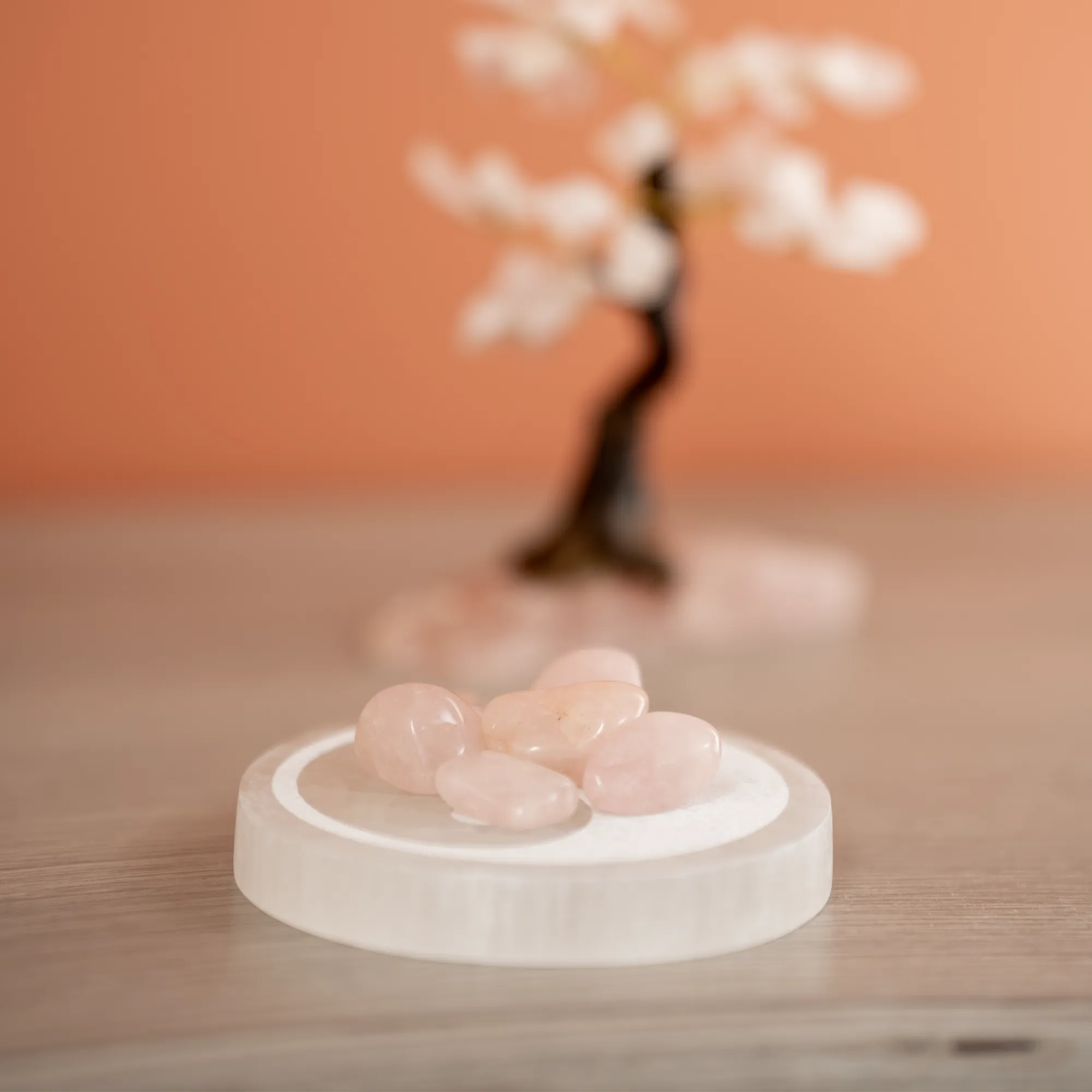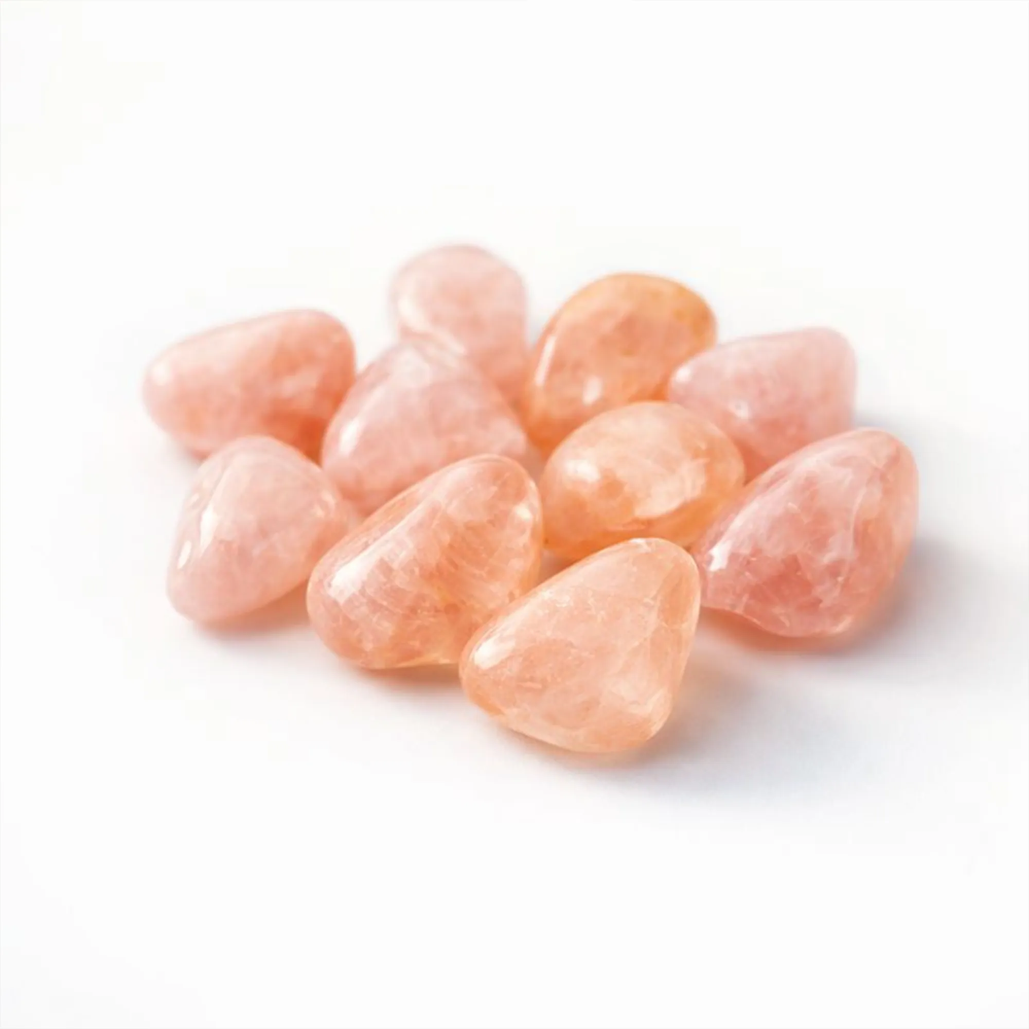 Pierres roulées Quartz Rose – Qualité A : symbole d’amour et de douceur, le Quartz Rose apaise le cœur, favorise la tendresse et harmonise les émotions. À porter ou à disposer, il diffuse une sérénité enveloppante et une élégance intemporelle.